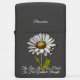A personalised white Daisy meadow flower Official Zippo lighter. A friendship birthday gift idea.