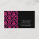Business card with pink and black damask design. This card is ready for customization with your business information. All text can be modified - change the style, colors, sizes, add or remove text fields to suit your needs. If you need any help please email Kirsty on kirsty_pargeter@yahoo.co.uk