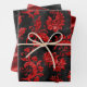 Elegant Damask Faux Velvet Red Black Gift Wrapping Paper Sheets