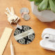 Elegant black and satin looking tan damask design key chain, with a stripe in the middle to personalize with your names. Lovely little gift idea for bride's maids or for the bride.