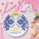 Elegant damask motif royal blue, yellow wedding paper plate.