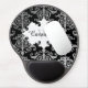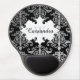 A pretty damask pattern in gray to white on black with a white central motif. Add your name and monogram to this gel mouse pad.
