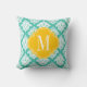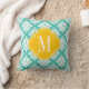 Elegant Damask Turquoise & Yellow Custom Monogramm Throw Pillow
