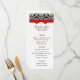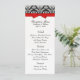 An elegant and stylish wedding reception menu featuring classic damask and bow. Fully customizable. Contact us for personalized requests.