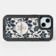 Elegant Dark Blue Floral with Monogram and Name iPhone 15 Case