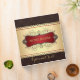 Gold trims on dark brown damask pattern. Red tag name. Elegant brown gold frame with custom text on front back and spine. Families recipes binders 1.5 inch binder. There is adjusted design for each size. 1, 1,5 and 2 inch binder.