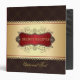 Gold trims on dark brown damask pattern. Red tag name. Elegant brown gold frame with custom text on front back and spine. Families recipes binders. 1.5 inch binder.