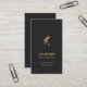 Elegant customizable business card template with dark background and faux gold scissors/comb icons. Simple elegant design, perfect for hair stylist, hairdresser, hair salon.