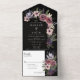 Elegant Dark Floral Cascade Black Burgundy All In One Invitation