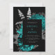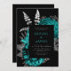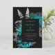 Elegant Dark Floral Teal Silver QR Code Wedding Invitation
