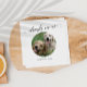 Personalize the napkins with a photos of your dogs and their names. The napkin reads "drinks on us".