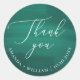 Elegant script wedding thank you sticker with in dark green emerald, deep sea green colors. Suitable for summer woodland / forest or greenery wedding theme.
