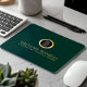 Enhance your workspace with this emerald green leather print mouse pad, designed to combine style and functionality. Featuring a luxurious gold logo and the option to add two lines of custom text, this mouse pad is perfect for personalizing with your name, business, firm, or any other details of your choice.