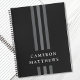Notebook with three dark gray lines running from top to bottom and your name across.