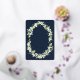 Hand painted snowberries and stems of eucalyptus arranged into a beautiful botanical frame against a dark navy background. The text and scattered dots on the front of the card are foil pressed. All text is fully editable. Please view this Collection in my store for invitations with alternative wording options, different colors and for coordinating items.