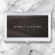 Elegant business card holder with your name printed on the front on a PRINTED dark oak wood background.
