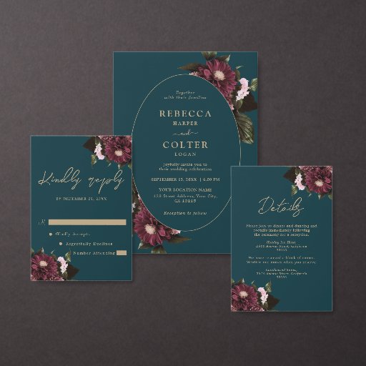Elegant Dark Teal Burgundy Floral Wedding Enclosure Card