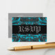 Elegant Dark Teal Damask RSVP Wedding Card