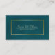 These business cards are simple, sophisticated, professional, stylish and elegant. They feature gold lettering and a faux foil gold border on a marbled dark aqua, turquoise or teal colored background. Perfect for a wide variety of professions, they are easily customized to meet your needs including adding your own QR code on the back.
