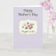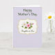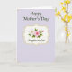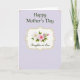 Designed with a soft lavender background, this Mother’s Day card centers on an ornate, curved frame in warm gold that feels like a gentle embrace ❤️. Inside the frame, a creamy panel holds a floral cluster that suggests closeness and care through its careful, gathered arrangement. Two main blossoms stand out: one white flower with a pale yellow center and one pink flower with a deeper-toned core, tucked among fresh green leaves, small buds, and slender stems. At the top, “Happy Mother’s Day” is placed above the frame in dark green serif lettering, spaced neatly so it feels calm and balanced. Near the bottom inside the frame, “Daughter-in Law” appears in a flowing dark green lettering style, adding a tender, family-focused touch 🌼. The overall layout keeps plenty of open space, letting the flowers and words feel like they’re speaking softly rather than shouting. Delicate curved flourishes sit in the upper and lower corners, echoing the frame’s scroll-like shape in a subtle gold tone. The center panel is a smooth cream color, bordered by a softly shimmering gold outline around the floral vignette.