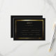 Black & Metallic Gold Wedding RSVP Response Card. Dinner Options. Black back.