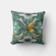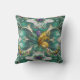This is an elegant throw pillow featuring Mardi Gras colors and decorative objects on an ink oil background. The main color used in the design is green with a touch of gold, purple and white.