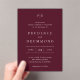 Classic style acrylic wedding invitation featuring a simple yet elegant design in a deep burgundy color that is perfect for a fall wedding or a winter / Christmas wedding.