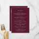 Elegant Deep Burgundy Classic Wedding Menu