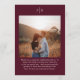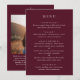 Classic style wedding menu featuring a simple yet elegant design in a deep burgundy color that is perfect for a fall wedding or a winter / Christmas wedding. Use the template to add a photo or remove it in the design editing tool.