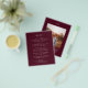 Classic style budget wedding menu flyer featuring a simple yet elegant design in a deep burgundy color that is perfect for a fall wedding or a winter / Christmas wedding. Use the template to add a photo or remove it in the design editing tool.