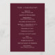 Classic style flat wedding program featuring a simple yet elegant design in a deep burgundy color that is perfect for a fall wedding or a winter / Christmas wedding.