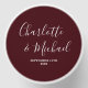 Create a touch of elegance for your wedding with our Elegant Deep Burgundy Script Minimalist Wedding Square Sticker. This customization includes the names of the bride and groom along with the special date. Perfect for adding a personal touch to your wedding favors, invitations, or decor.