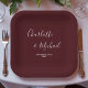Elegant Deep Burgundy Script Minimalist Wedding Paper Plates
