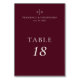 Elegant Deep Burgundy Wedding Table Number