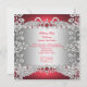 Elegant Deep Red Diamonds Silver Floral Birthday Invitation