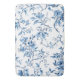 Elegantly drawn classic and clean floral featuring delicate Delft blue vines, flowers and curving branches on white background.