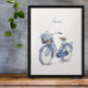 Elevate your wall decor with the timeless grace of this "Bicycle in Delft Blue" art poster. This high-quality print showcases a stunning watercolor vintage bicycle, intricately detailed with classic Dutch blue and white floral patterns. The centerpiece features a charming basket overflowing with lush blue peonies, bringing a fresh, botanical energy to your home or office. Perfect for framing, this poster serves as a sophisticated focal point that blends romantic European artistry with a clean, modern aesthetic. The elegant script name is fully customizable, allowing you to personalize this piece of art to celebrate a family name, a special location, or a meaningful word.