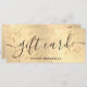 Gift like a boss with this elegant gold gift certificate! ✨ A faux brushed gold background shimmers with delicate gold leaves, setting the stage for your business name and "Gift Card" in a swoon-worthy script. The back keeps the glam going with more gold and leaves, plus plenty of space for all the gifting details. Perfect for any business that wants to add a touch of luxury to their gifting game. #luxurygift #goldeaves #giftcertificate #magicalgift #brushedmetal