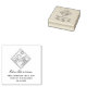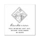 Elegant return address stamp featuring your last name in handwritten script and address in simple font, with a hand-drawn desert landscape with mountains and cacti, in a chic diamond frame. Create your own!