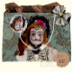 This eye-catching gift bag features traditional 'La Catrina' Day of the Dead face makeup digitally modeled on the endearing face of an antique Victorian doll from my personal collection. A gold-on-silk damask print provides an elegant background. A matching greeting card is available, as well as invitations for your family-friendly gatherings to welcome the souls of the departed. Use this bag to hold a hostess gift when attending a Día de Muertos fiesta, or to bring homemade sweet treats along for the kids. Sport it for any occasion whatsoever!