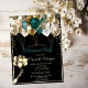 Elegant gold diamonds frame, balloons, and wine bottle, on a black background.