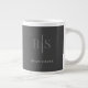 Elegant DIY Grey Monogram & White Name, Dark Grey Giant Coffee Mug