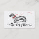 Professional dog sitter business card featuring a white background that can be changed to any color, a vintage illustration of a dachshund dog, and your business information on the reverse.