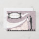 Elegant dusky pink and black formal rsvp wedding flat cards / invitations with a beautiful romantic bride and groom vector illustration and cute white doves carrying love hearts on a pretty ornate dusky pink roses design background. On the back of the invites are two lovely white doves and text template for you to personalize with your event details. Classy, trendy, chic modern invites with a glamorous vintage elegance look. Perfect for a spring, summer, fall / autumn or winter event. I have matching products in my store. PLEASE NOTE - ALL INVITATIONS ON ZAZZLE HAVE FLAT PRINTED IMAGES. If you need assistance customizing your product please contact me through my store. I will be happy to help.