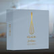 An elegant recipe binder featuring a chic gold whisk on a stylish dusty blue background with your personalized name and title set in modern gold typography. Designed by Thisisnotme©