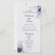 This is customizable and an elegant dusty blue and white floral wedding program with light blue and navy blue watercolor flowers on a light grey blue background design. It is perfect for a floral winter wedding celebration.