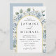Elegant Dusty Blue Arch Floral Frame Wedding Foil Invitation