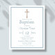 Celebrate your little one's special day with our elegant dusty blue baptism invitation. This affordable paper invitation features a beautiful dusty blue border and a stunning gold effect crucifix on a clean white background, perfect for any baby boy or girl's baptism or christening.