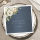 These elegant dusty blue boho roses wedding napkins are the perfect way to add a touch of sophistication, with just a hint of bohemian style to your wedding day. The napkins feature a beautiful vintage bouquet of white roses on a dusty blue background, with elegant typography that can be personalized with the bride and groom's names and wedding date. Whether you are having a traditional wedding or a boho-inspired celebration, these napkins are sure to add a touch of elegance to your special day.