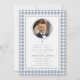 Elegant Dusty Blue Bow Photo Boy First Communion Invitation. For best results upload a square image of the child.